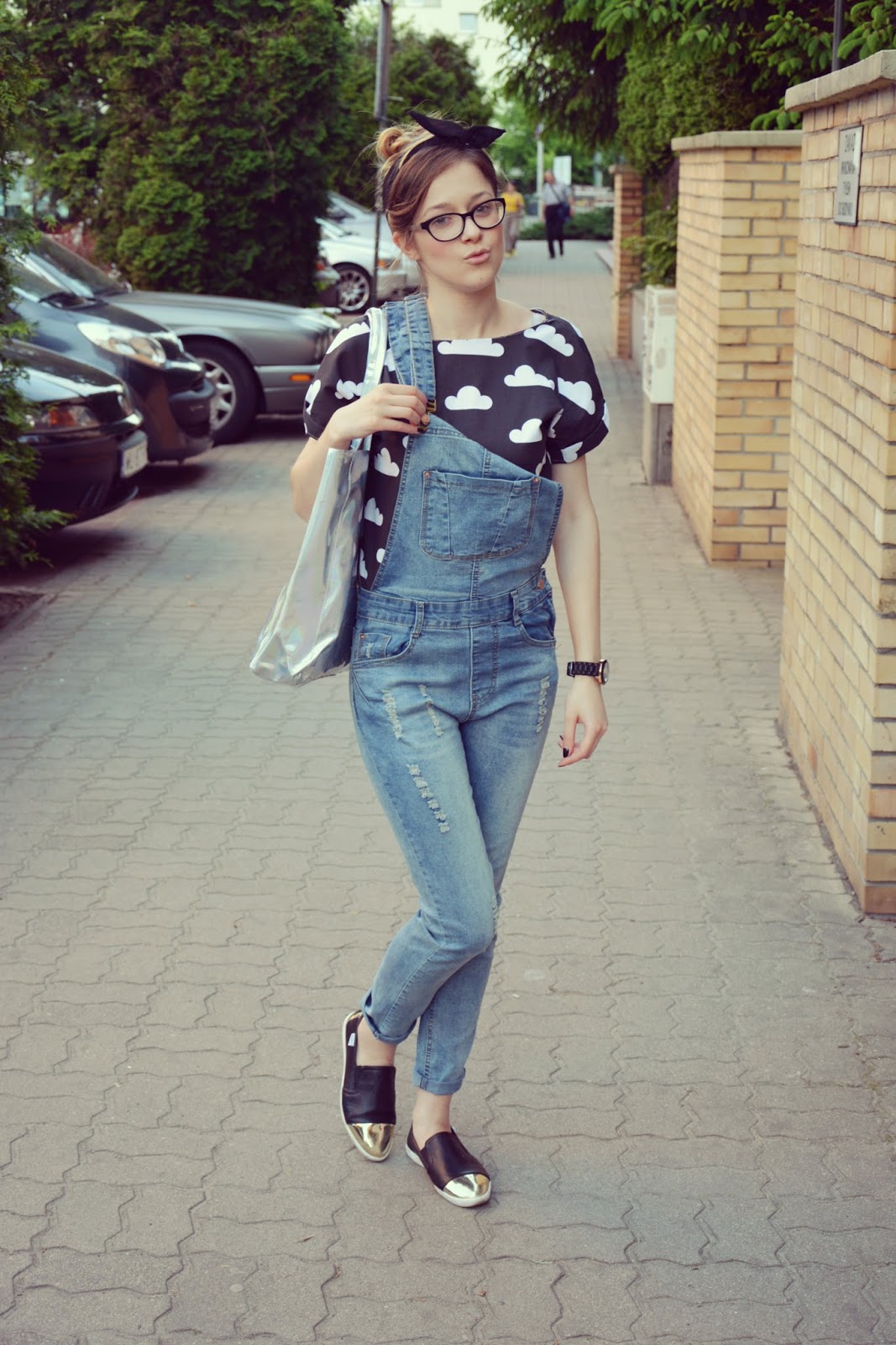 Świetna stylizacja! Super te ogrodniczki i bluzka w chmurki 🙂 Buty masz genialne i ta opaska – wyglądasz pięknie w tej stylizacji 🙂