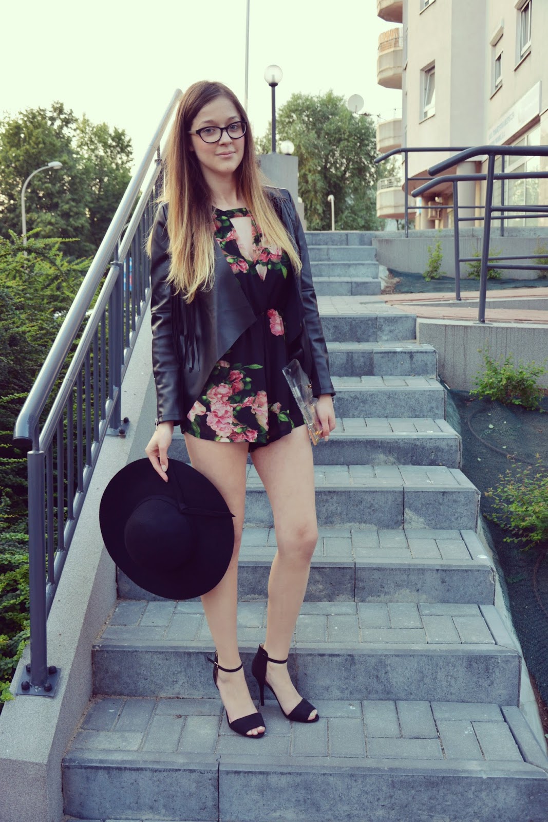 Kombinezony to ostatnio ulubiona część garderoby. Mam ich kilka, każdy w innym stylu. Dziś chciałabym wam pokazać jeden z nich. Czarny, w piękne róże z wycięciem z przodu i na placach, bez rękawków, możecie zamówić go TUTAJ. Na gołe ramiona założyłam ramoneskę z frędzlami (TUTAJ). Ostatnio frędzle zawróciły mi w głowie, staram się je ograniczyć hehe ale wydaje mi się, że jeszcze jedna kurteczka z tym motywem będzie pokazana na blogu 🙂 Dodatki to kapelusz, sandałki i moja mała perełka, czyli przeźroczysta kopertówka (TUTAJ). Zawsze chciałam taką mieć. Miałam sobie sama taką uszyć ale kwestie logistyczne zawiodły, dodatkowo w Polsce dostać rzeczy na różnego rodzaju DIY jakie sobie wymyśle graniczy z cudem. Łatwiej zamówić i cieszyć się wolnym czasem hehe… O kopertówce oraz pozostałych rzeczach które zamówiłam w TYM sklepie będzie osobny post.
