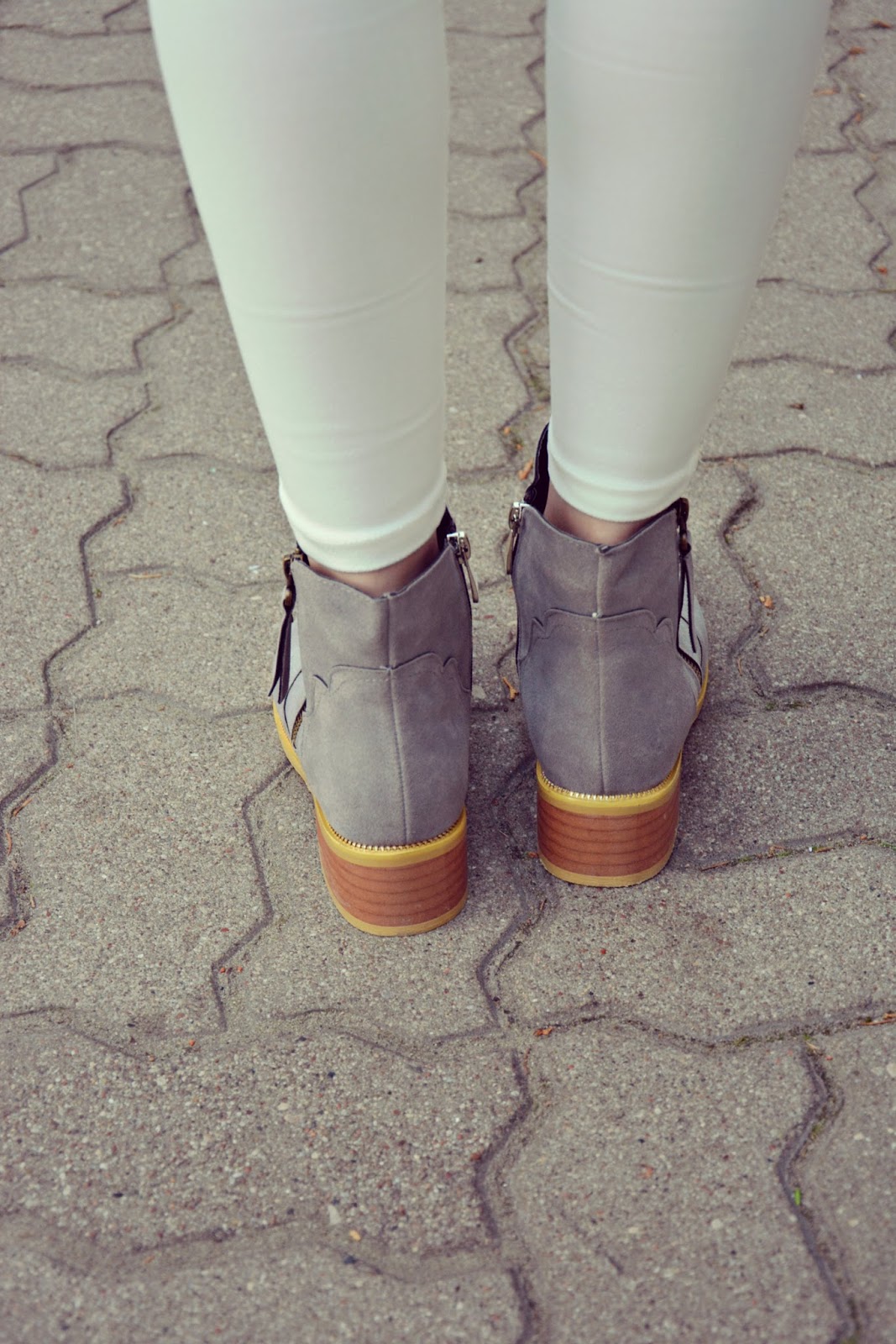 Przepiękne zestawienie w takim kremowym kolorze, a szarość idealnie je podkreśla! Cudne masz te botki 🙂